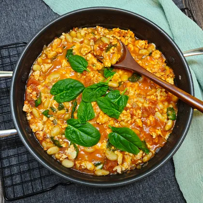 Выложите томаты и фасоль, доведите до лёгкого кипения.