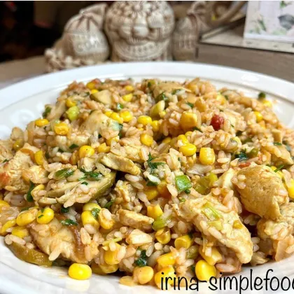 Рис с индейкой и грибами