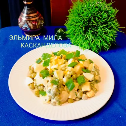 Салат с сыром, горошком и яйцами