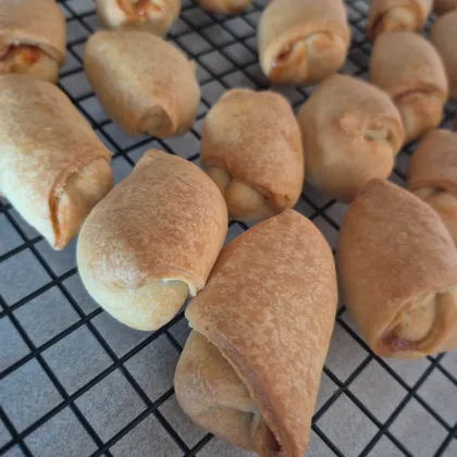 Раскатываем в круг и режем на 6 равных частей. Выкладываем повидло.