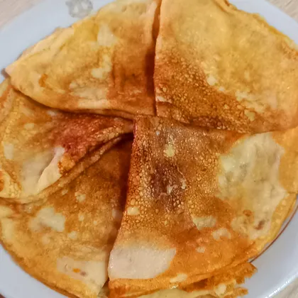 Готовые блины выложите на блюдо любым способом. У меня получилось десять блинов и штук пять я съела не донося до тарелки. Очень вкусные.