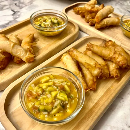 Хрустящие креветки в тесте «фило» и сальса из манго