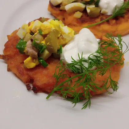 Тыквенные драники с топингом из печени трески