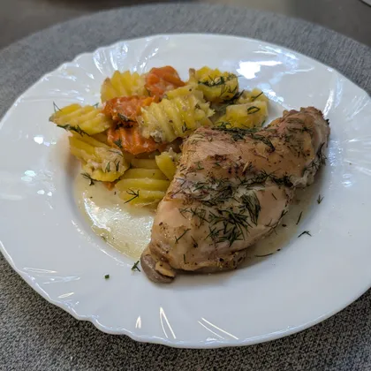 Ножки кролика слегка сбрызнуть маслом. Посолить, поперчить, добавить специи. У меня паприка копчёная и итальянские травы. Оставить мариноваться.