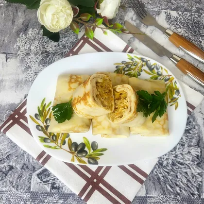 Блинчики с жареной капустой и сыром