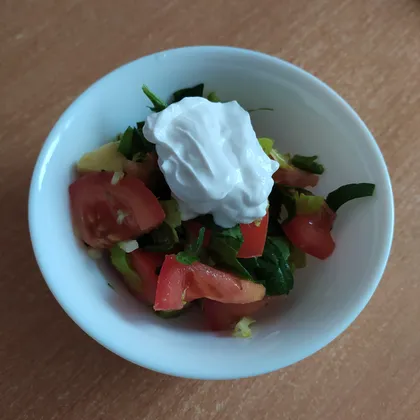 Салат из помидора, авокадо и зелени со сметаной