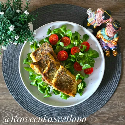 Рыбу обваливаем в муке и выкладываем на разогретую сковороду.