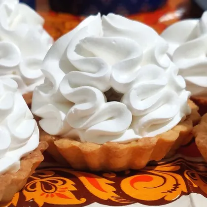 Песочные корзиночки с абрикосовым вареньем и белковым кремом