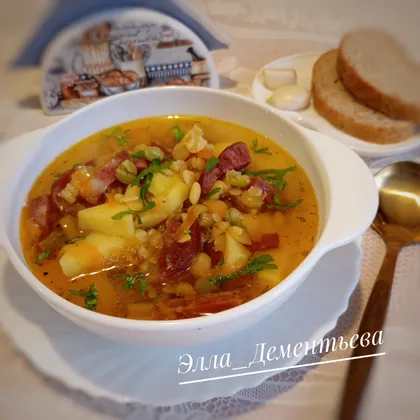 Суп из смеси бобовых на копчёностях