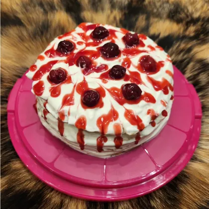 Очень нежный торт со сметанно-сливочным кремом и вишнёвым конфитюром. Готовится просто...