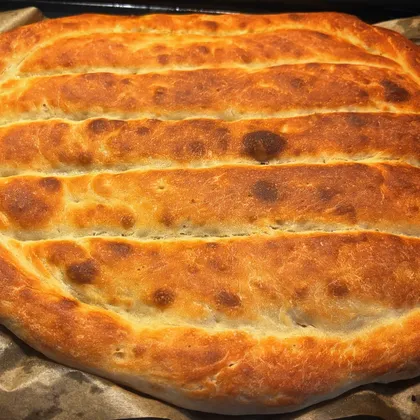 На пергамент кладём одну часть теста, обильно смазываем (прям руками 😁) тем, что подготовили заранее. Формируем овал и делаем рисунок, как показано на фото.