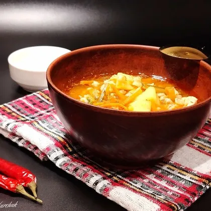 Рассольник с курицей и перловкой