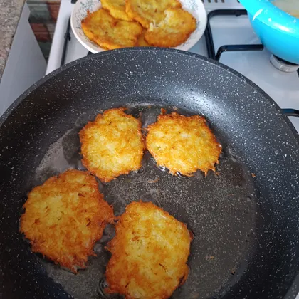 Делаем небольшие лепёшки потоньше, кладем на сковороду в масло, жарим 4-6 минут с каждой стороны до золотистой корочки.