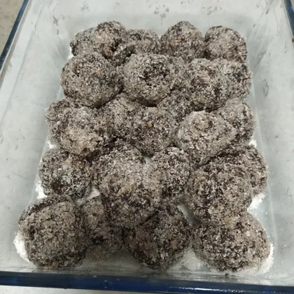 Все это хорошенько вымешала и слепила 30 шариков. Обваляла в кокосовой стружке. Поставила в холодильник, решила оставить их себе на Новый Год.
