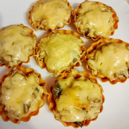 Жюльен из филе индейки и шампиньонов в тарталетках