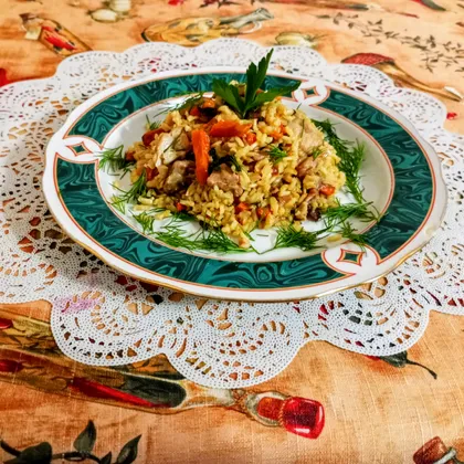 Плов из бурого риса с курицей
