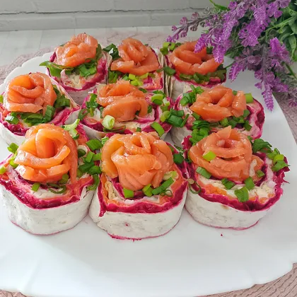 Необычная "шуба" в лаваше с форелью