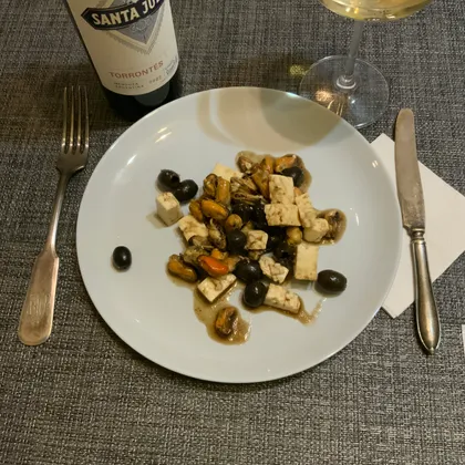 - На подачу: белое сухое вино (у меня аргентинский торронтес 2022 г.)