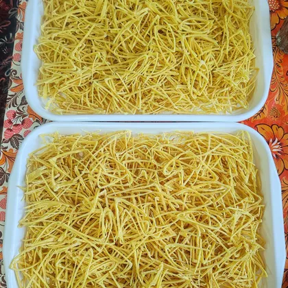 Скручиваем в рулет и нарезаем лапшу (до 5 мм).