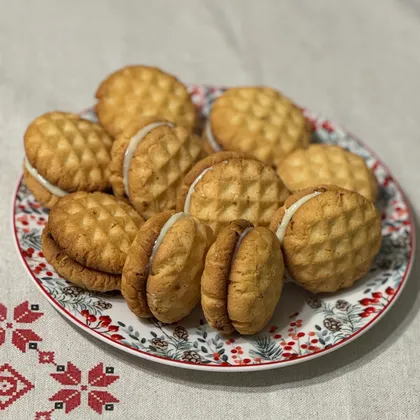 Печенье разделить на пары. На одну половину печенья нанесите крем и накройте второй половиной, слегка прижимая.