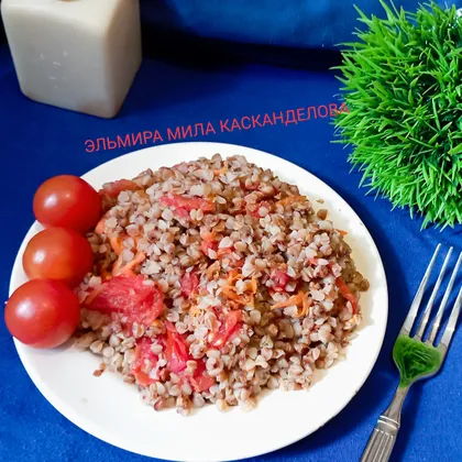 К овощам добавить гречку и соевый соус. Перемешать и ещё немного дать прогреться гречке с овощами под крышкой и готово.
