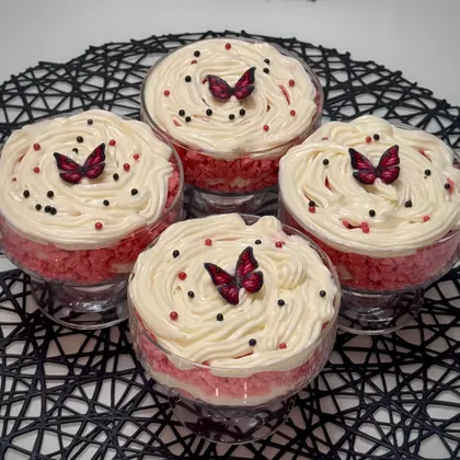 🍫Творожный сыр, сливки и пудру взбиваем до однородной консистенции. Загружаем в кондитерский мешок или обычный пакет (сделав дырочку на конце) и слоями выкладываем в стаканчик чередуя бисквит и крем. Сверху украсить по желанию.