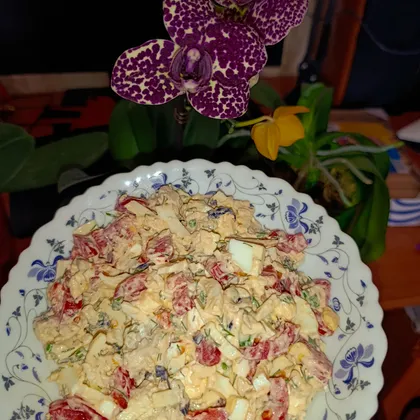 Смешать все ингредиенты, заправить майонезом и посолить. Приятного аппетита.