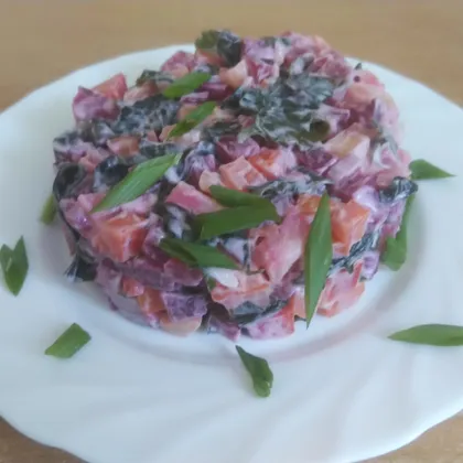 Вкусный салат, как "селёдка под шубой", из отварных овощей с водорослями вакаме. Рецепт...