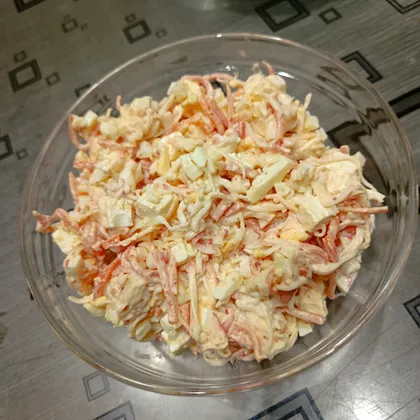 Крабовые палочки разбираем на волокна или нарезаем соломкой.