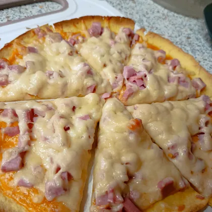Колбасу нарезаем кубиками и выкладываем на лепешку.