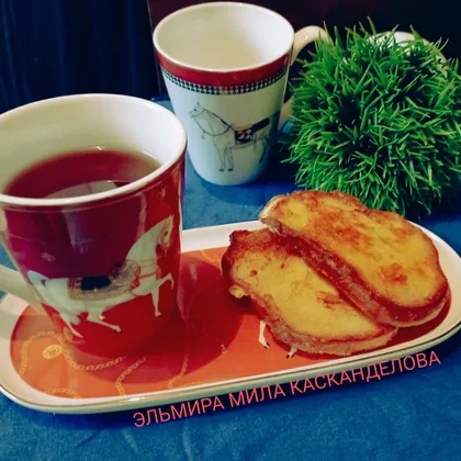 Каждый ломтик хлеба окунуть в яичную смесь и выложить на разогретую сковороду с маслом.