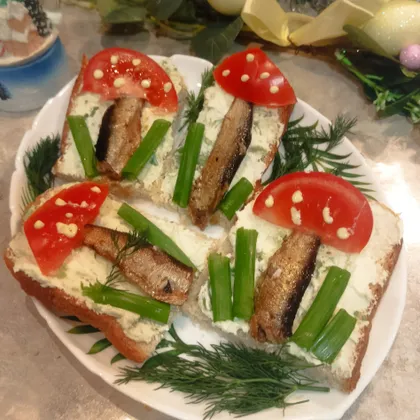 Бутерброды со шпротами - грибочки на Новогодний стол