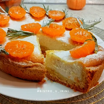 Я украсила мини-мандаринками и присыпала сахарной пудрой, получилось очень нарядно и празднично.